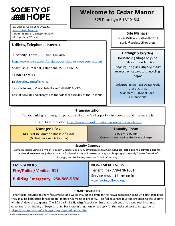 Cedar Manor Info